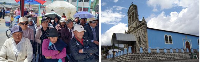 Dentro de la historia religiosa recordaremos que en 1.903 el Sr. Teniente Político Lorenzo Barreno comienza a trabajar la construcción de la iglesia para los cuales se trasladaba hasta las lomas dónde tocaba un tambor para llamar a las mingas, para realizar las principales paredes, se consiguió en ese entonces una campana, la misma que fue colgada en un árbol existente en la plaza Central para hacer llamadas a orar para trabajar, de esta forma se iba dando cuerpo al templo donde se rendía culto a San Isidro labrador; para ello pedir el respaldo de las misioneras que visitaban y el apoyo de los moradores mediante la peregrinación del Santo Patrono junto con creyentes por toda la jurisdicción parroquial con el fin de recolectar limosna y poder acabar la obra, lo que sucedió para alegría de todos en el año de 1.932. La actual iglesia fue bendecida en 1.969 y reconstruida en 1.986 con financiamiento entregado por Advenía, y moradores del pueblo.